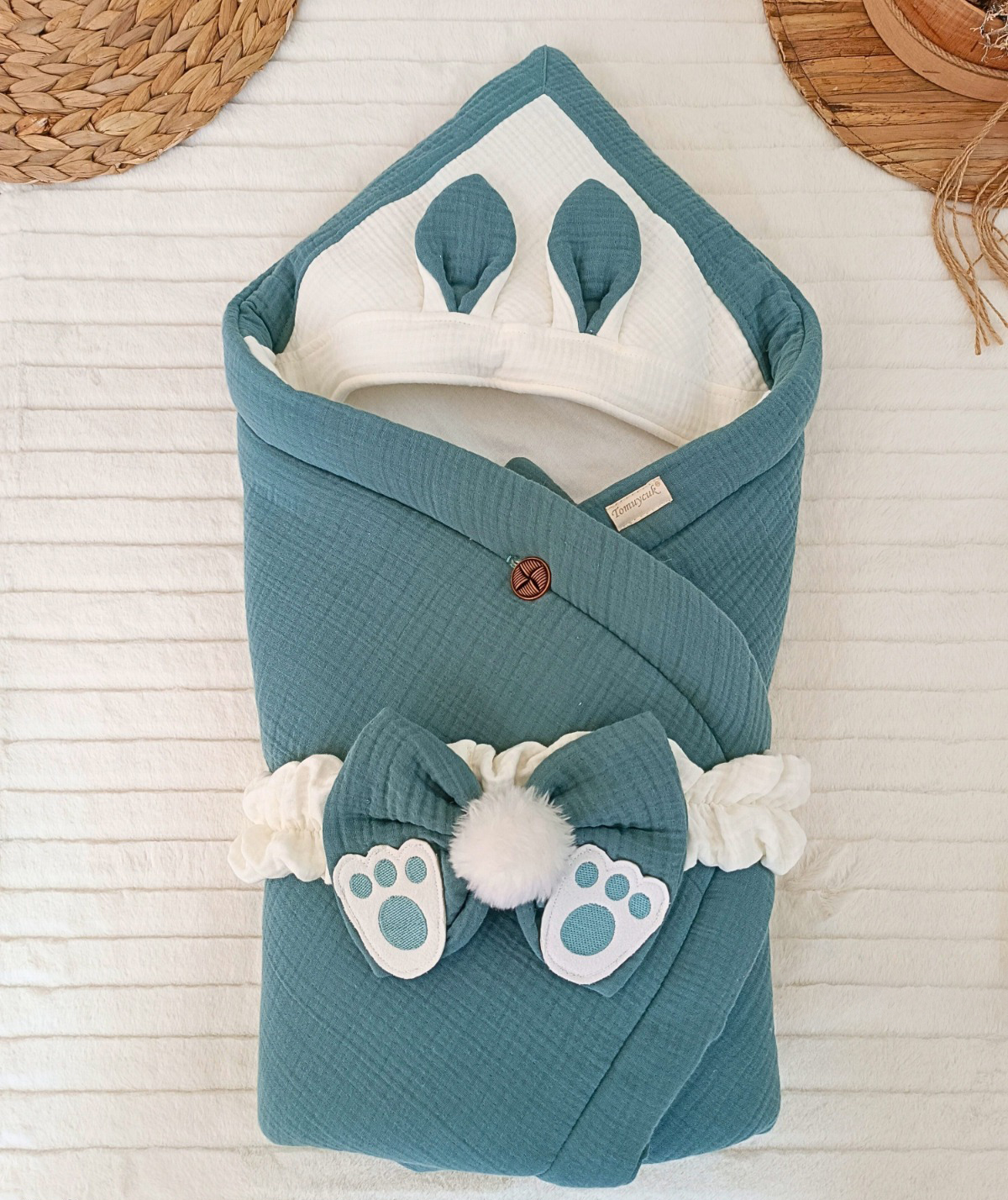 قنداق قطني ناعم مع قبعة موديل ارنب