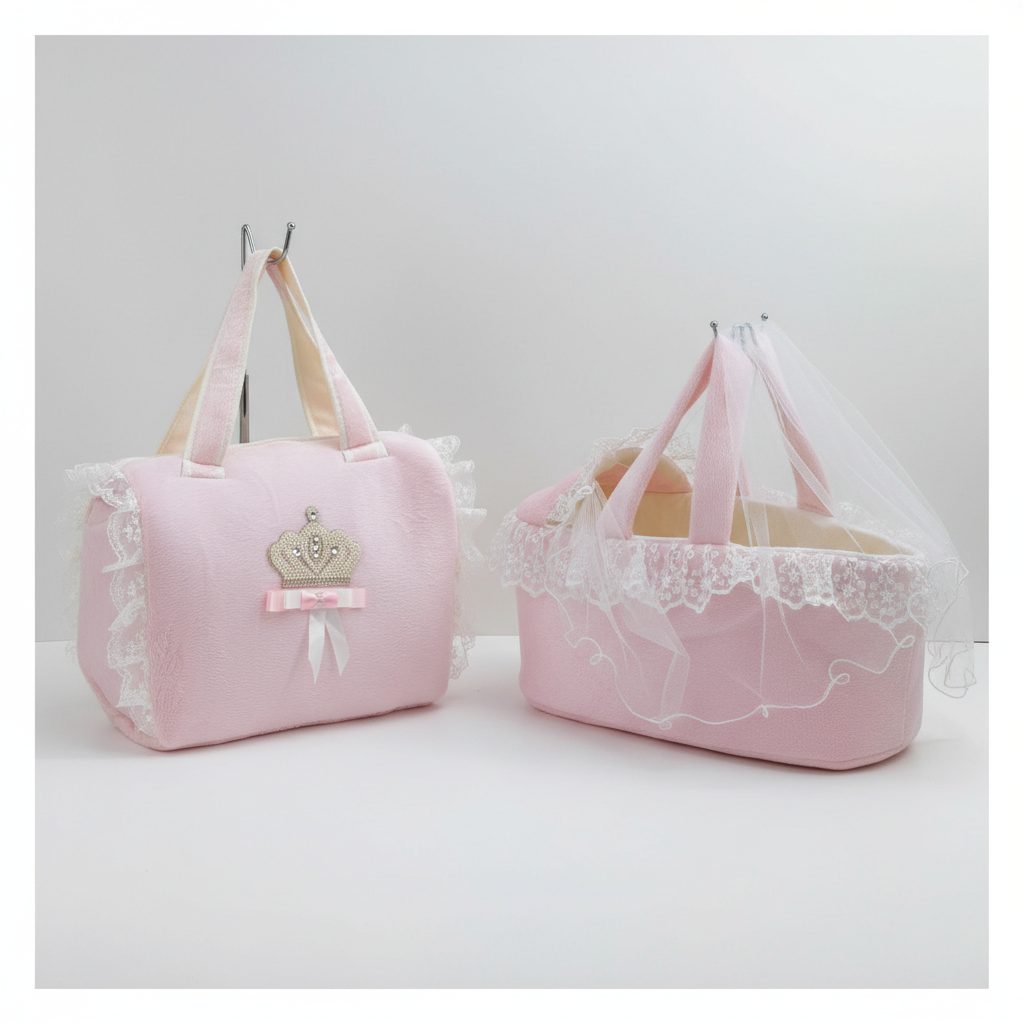 حمالة بيبي مع شنتة دانتيل بلون زهر تاج
