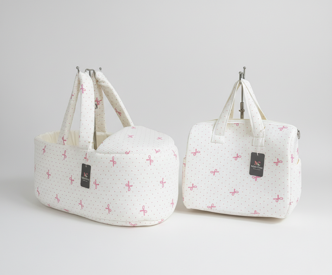 حمالة بيبي مع شنتة برسمة ببيونة زهر Original price was: ₺2.000,00.₺1.750,00Current price is: ₺1.750,00.