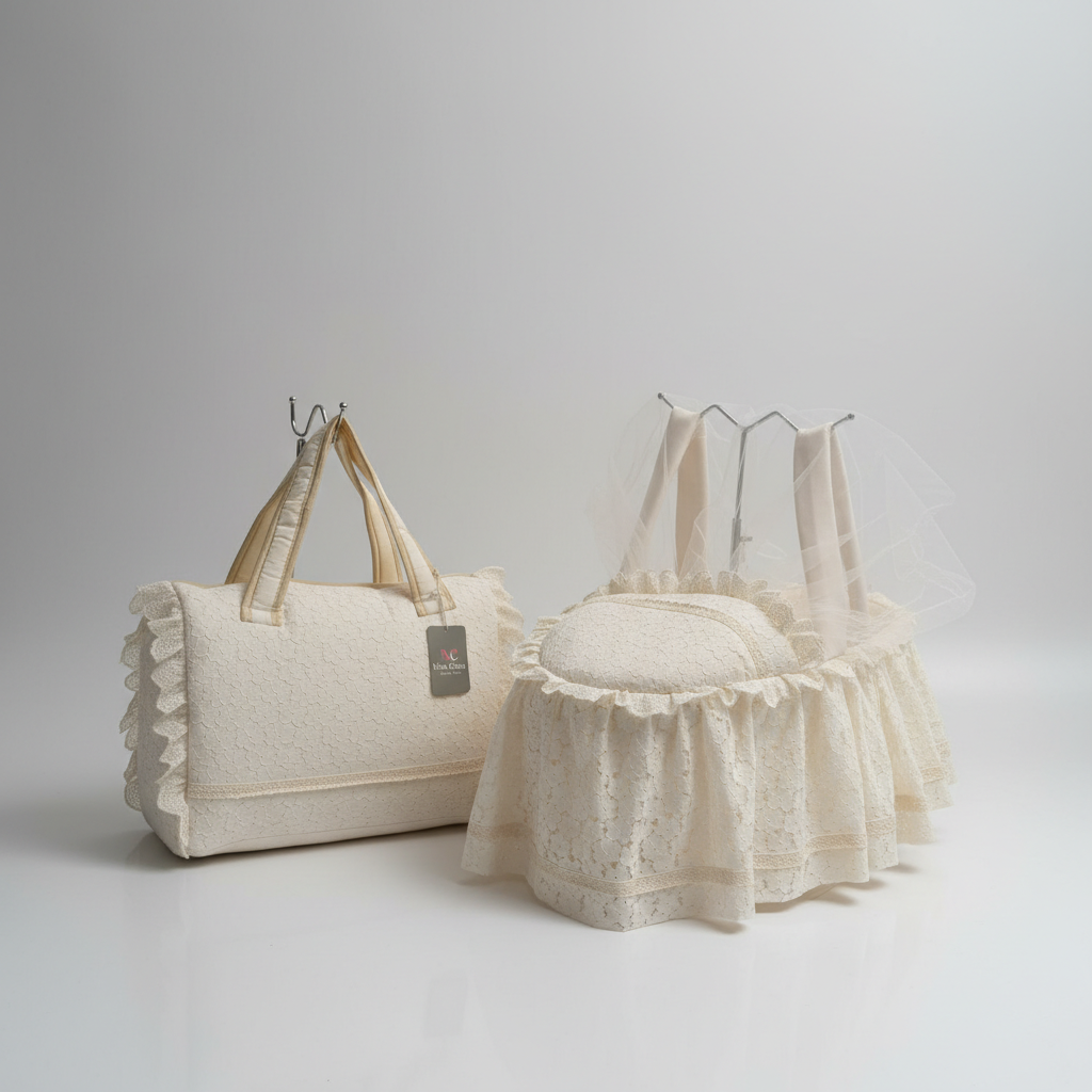 حمالة بيبي مع شنتة قماش دانتيل طبقة